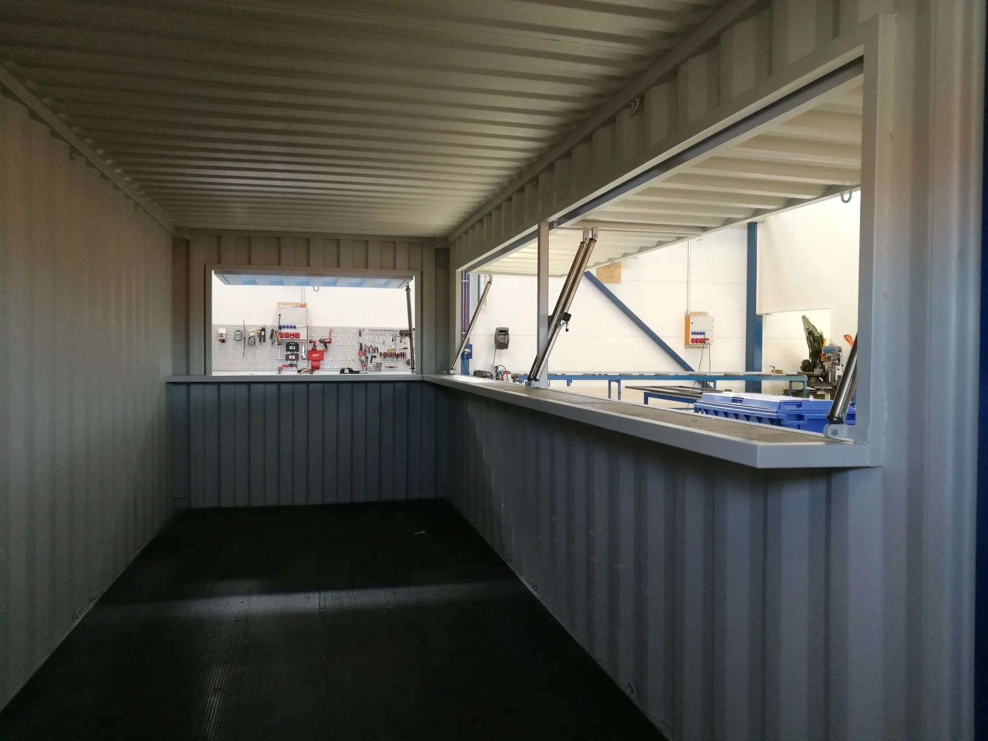 • 1 lockable serving hatch with gas springs on one end wall. Dimensions (lx) approx.1950mm x 900mm