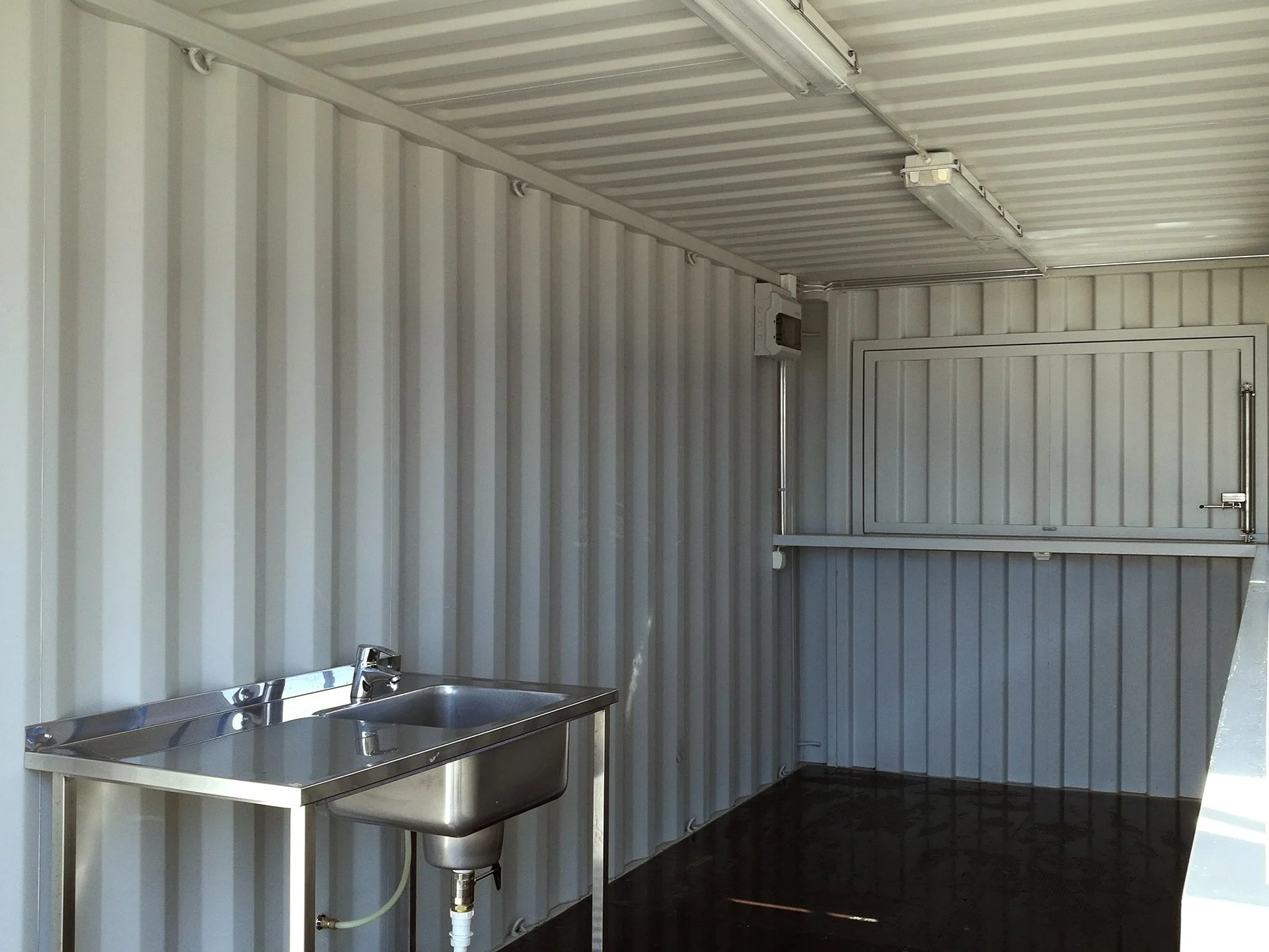 • 2 lockable serving hatches with gas springs on one 6m wall. Dimensions (lx) approx.1950mm x 900mm per hatch