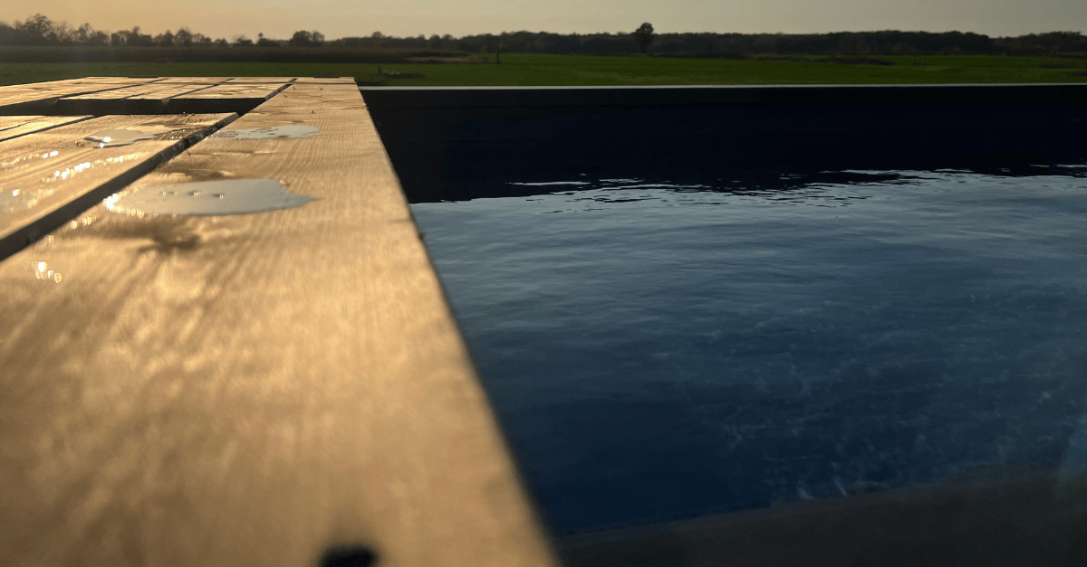 • Deck: 2 ft × 8 ft cedar tanning ledge with 30 QT built-in cooler with drain