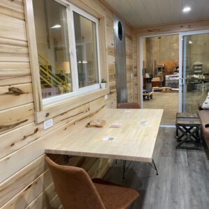 • White shiplap, pine, amish pine, basswood & amish blue pine are all upgrade options that we offer for your container home interior walls.