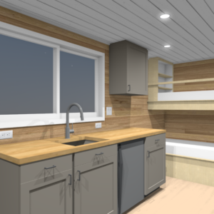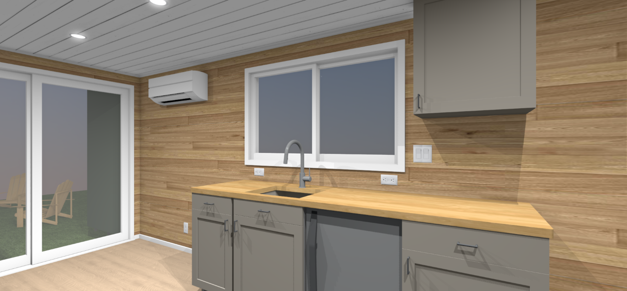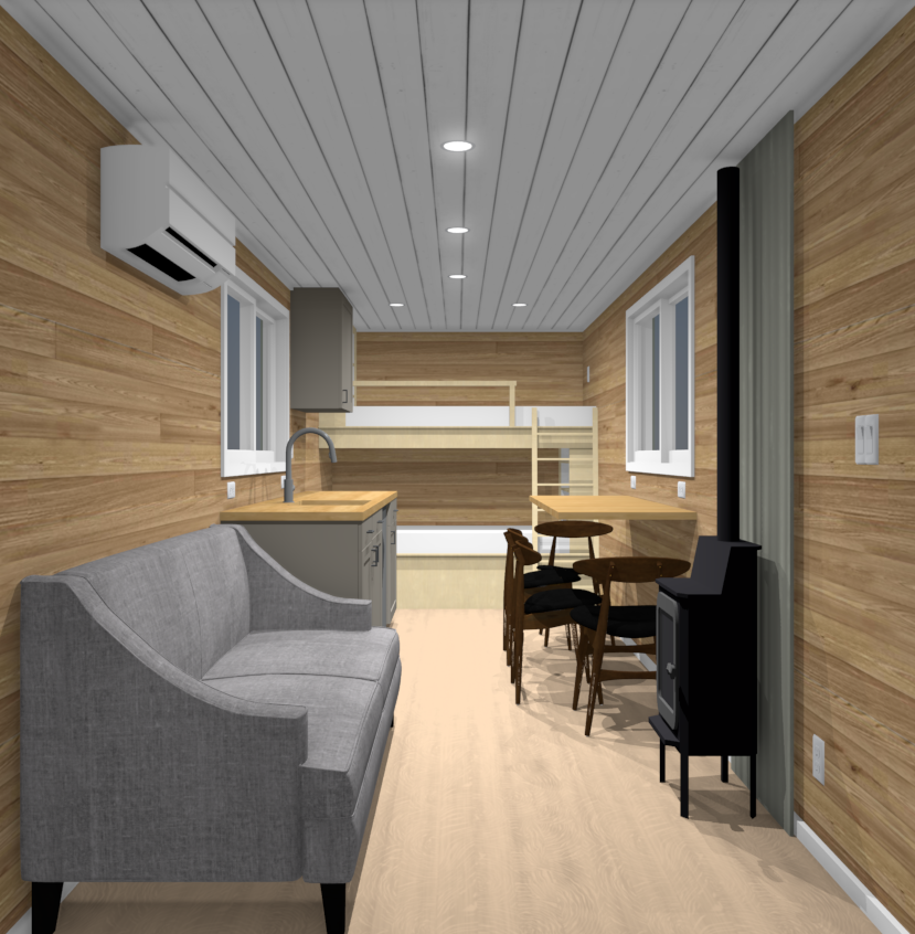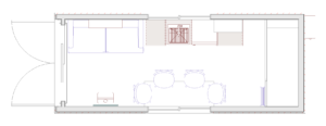 Our 20ft container floor plan includes a kitchen area and open space for sleeping/hanging out/ and eating.