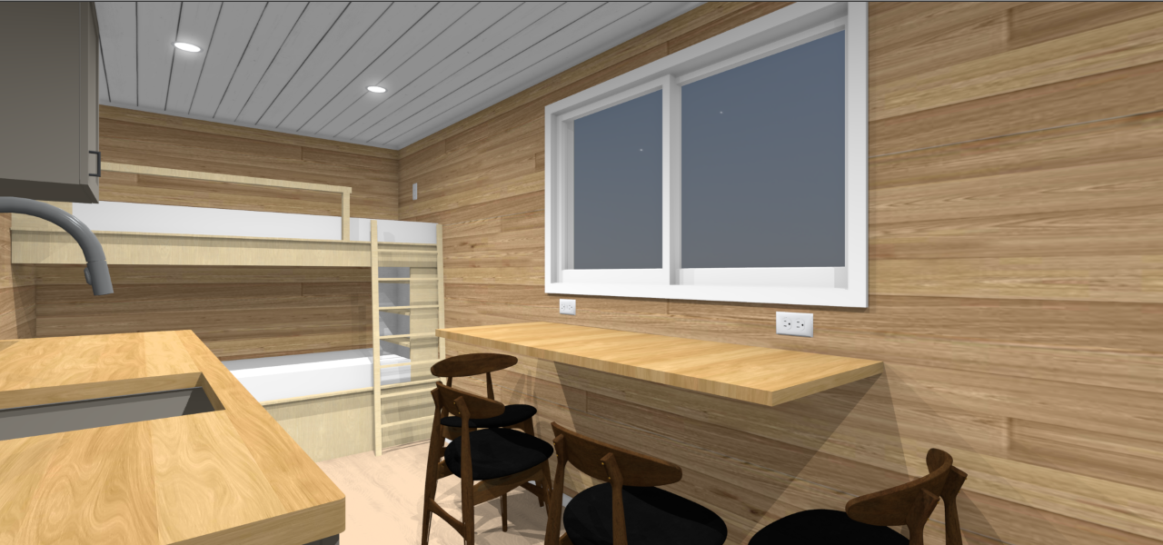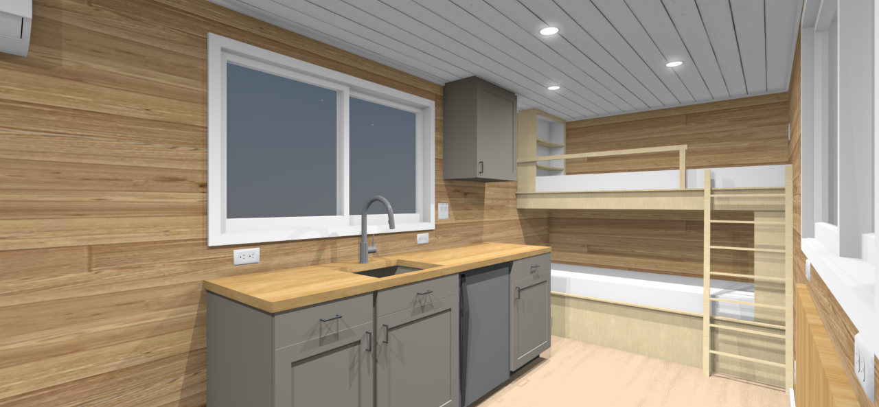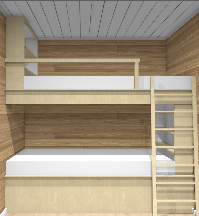 • You can choose to add a custom built-in bunk bed to the office space to maximize sleeping space.