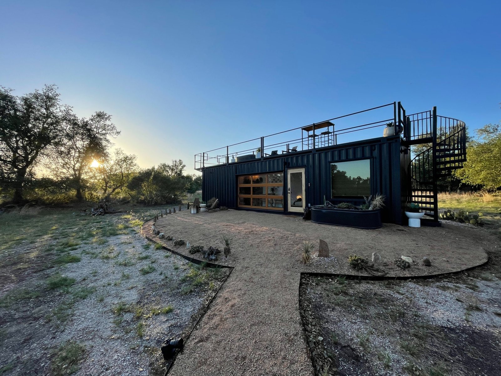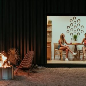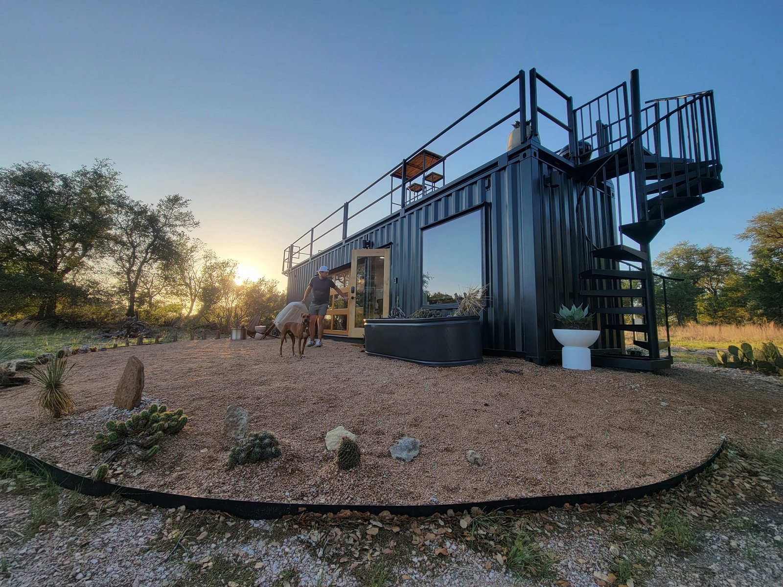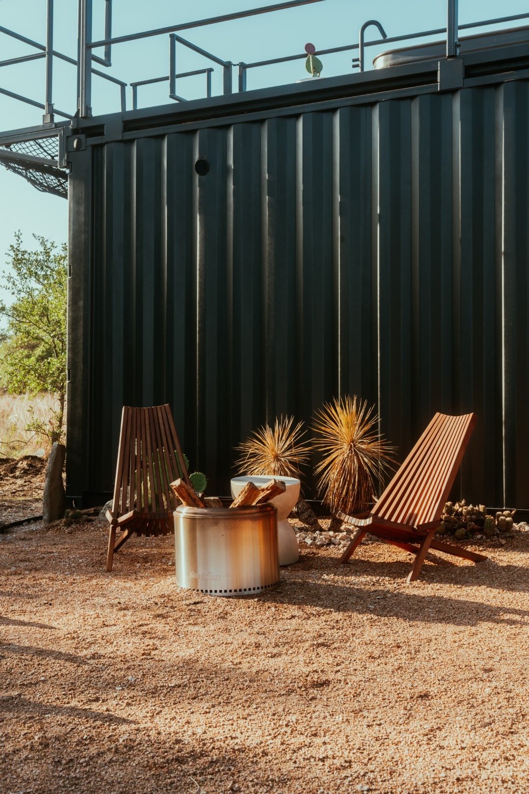 “The Porter” is a premium container home designed for luxury, comfort, and outdoor enjoyment. Featuring a rooftop deck, cowboy hot tub, relaxing hammock, and fully equipped living spaces, it combines modern amenities with a stylish and functional container structure.