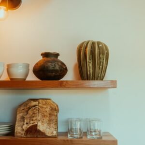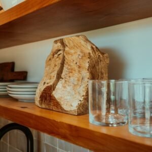 Butcher block shelving above sink