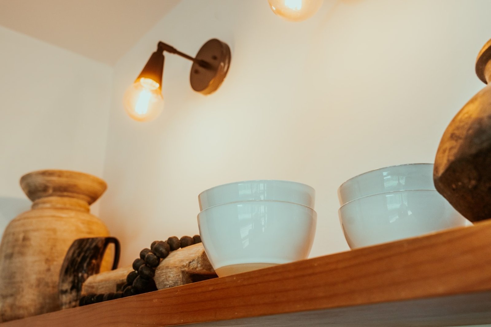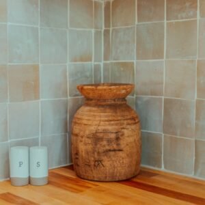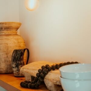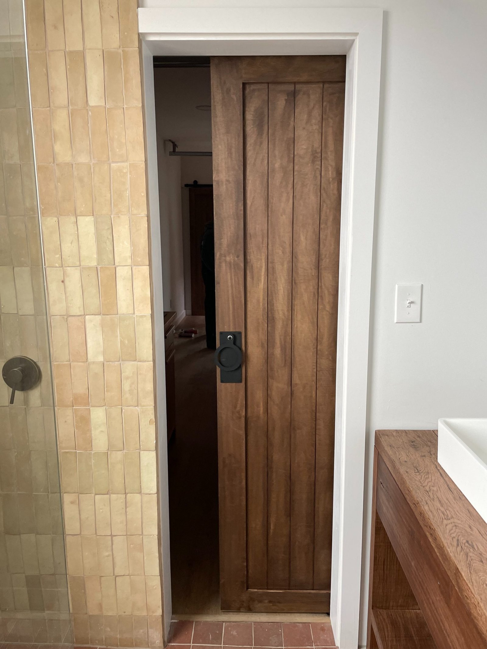 Custom wood vanity with ceramic bowl