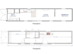 Inspired by the home we built on HGTV’s Tiny House, Big Living, the Kennedy is a 40FT container home.  It includes a bathroom, bedroom, living space, and a great kitchen. The Kennedy is available in two floorplans.