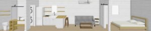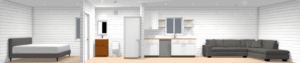 Inspired by the home we built on HGTV’s Tiny House, Big Living, the Kennedy is a 40FT container home.  It includes a bathroom, bedroom, living space, and a great kitchen. The Kennedy is available in two floorplans.