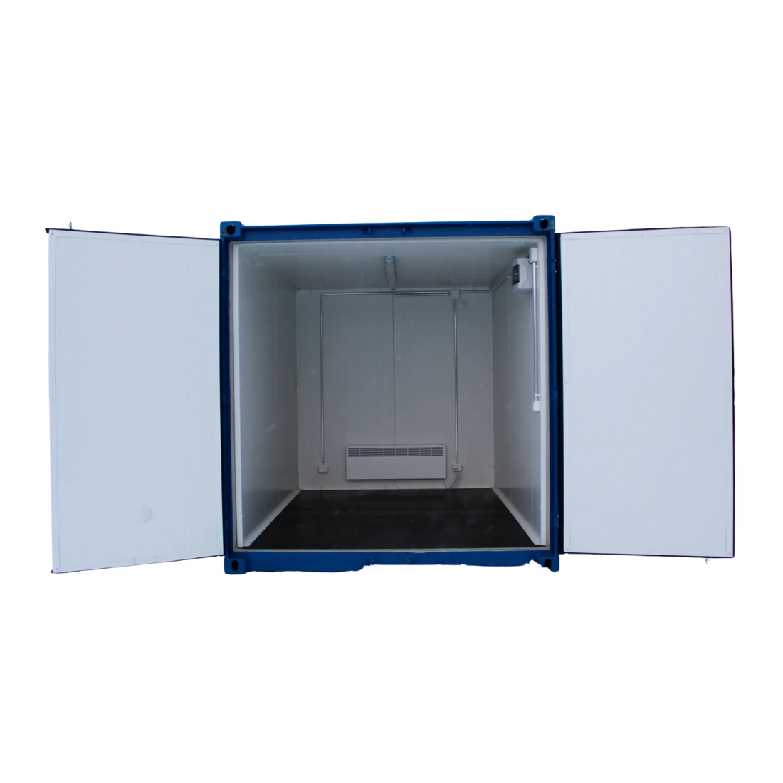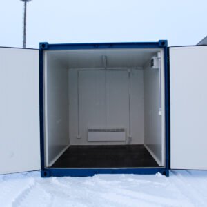 This 6′ insulated container is a very popular insulated storage solution for year-round use. The insulation keeps moisture out, and with a heater, the space stays warm all year round. The container comes standard with double doors and two ventilation valves. Optional accessories include electricity, heating, and access doors. The container is only suitable for storage use (not for cargo use).We use 40mm PIR insulation for the walls, doors, and ceiling of our insulated containers. The interior walls are made of white metal plates, making this bright space easy to keep clean and resistant to moisture. What’s best about this insulated model is that you get to skip potentially moldy wool insulation and plywood walls altogether. PIR insulation does not mold or lose its thermal value, so it lasts twice as long as cheap wool+plywood containers. With the same insulation thickness, the thermal values are 50% better compared to XPS and wool insulation, maximizing the internal dimensions of the container. To give the container a finished look, we use moldings in the interior corners.