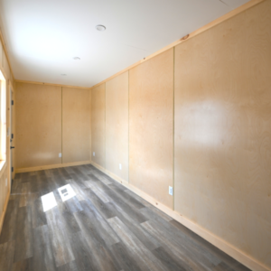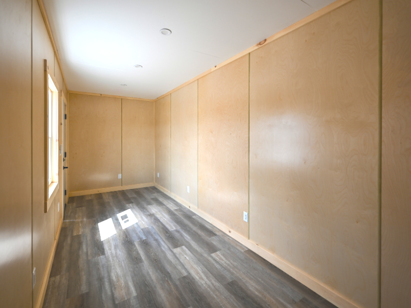 • Interior walls and ceiling: Finished plywood with trim