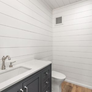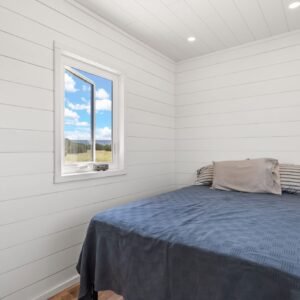 The Luke is a home built from a 40ft high cube ‘one tripper’ container attached to a 20ft high cube ‘one tripper’ container. This home has 1 bedroom, 1 bathroom, and an expanded open living, kitchen, and dining space. Exterior footprint is 480sqft.