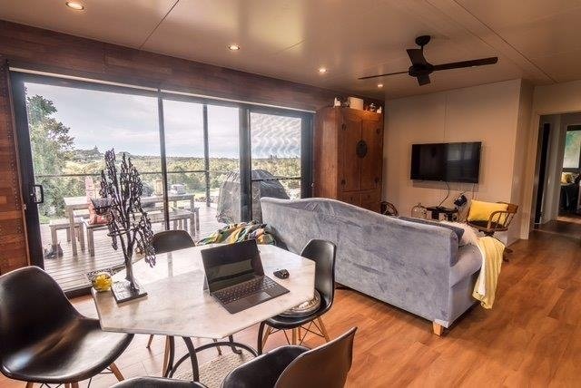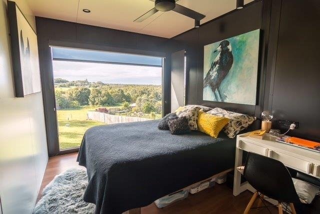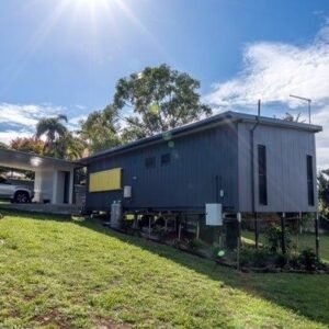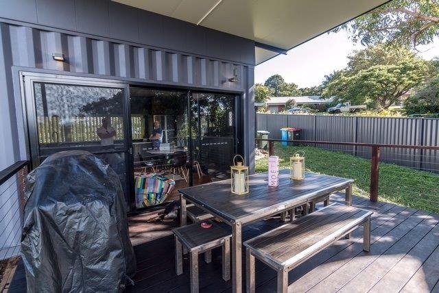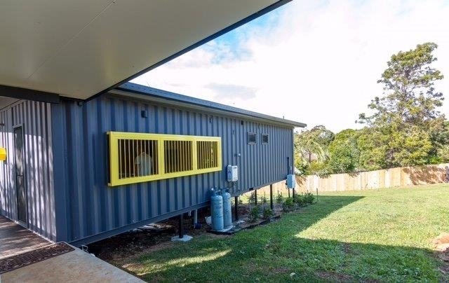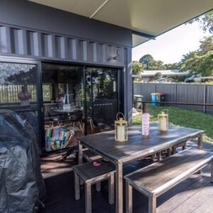 The Lennox shipping container home has been designed with 2x 40 foot containers with a large covered deck.