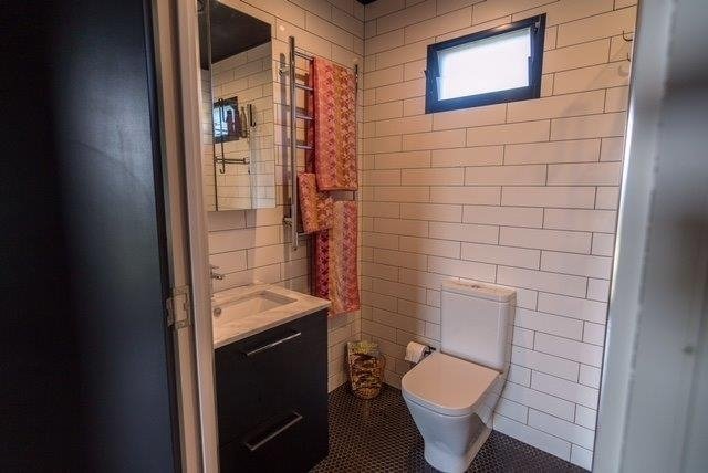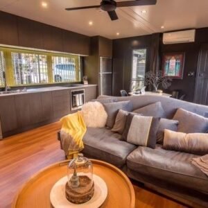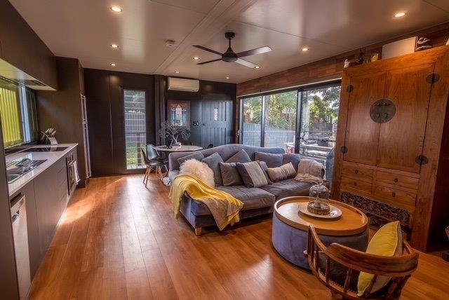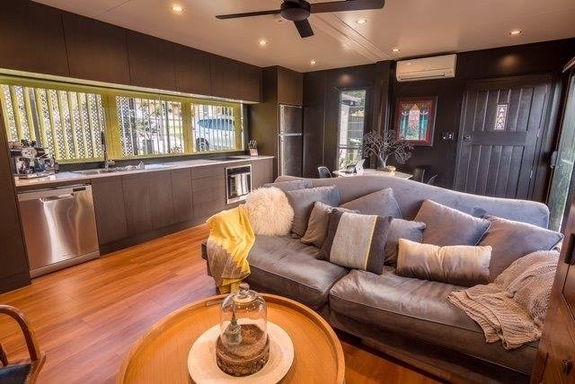 Internally it has been upgraded to black powder coated wall with a timber feature wall to creat warmth.