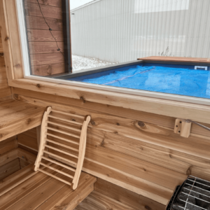 Sauna: 7 ft × 7 ft, seats up to 4 adults
