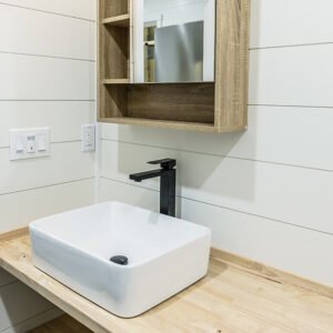 • PEX Piping and PVC Drain Systems with Black and Greywater Drains to be Connected to an RV Hookup or Sanitary Sewer System